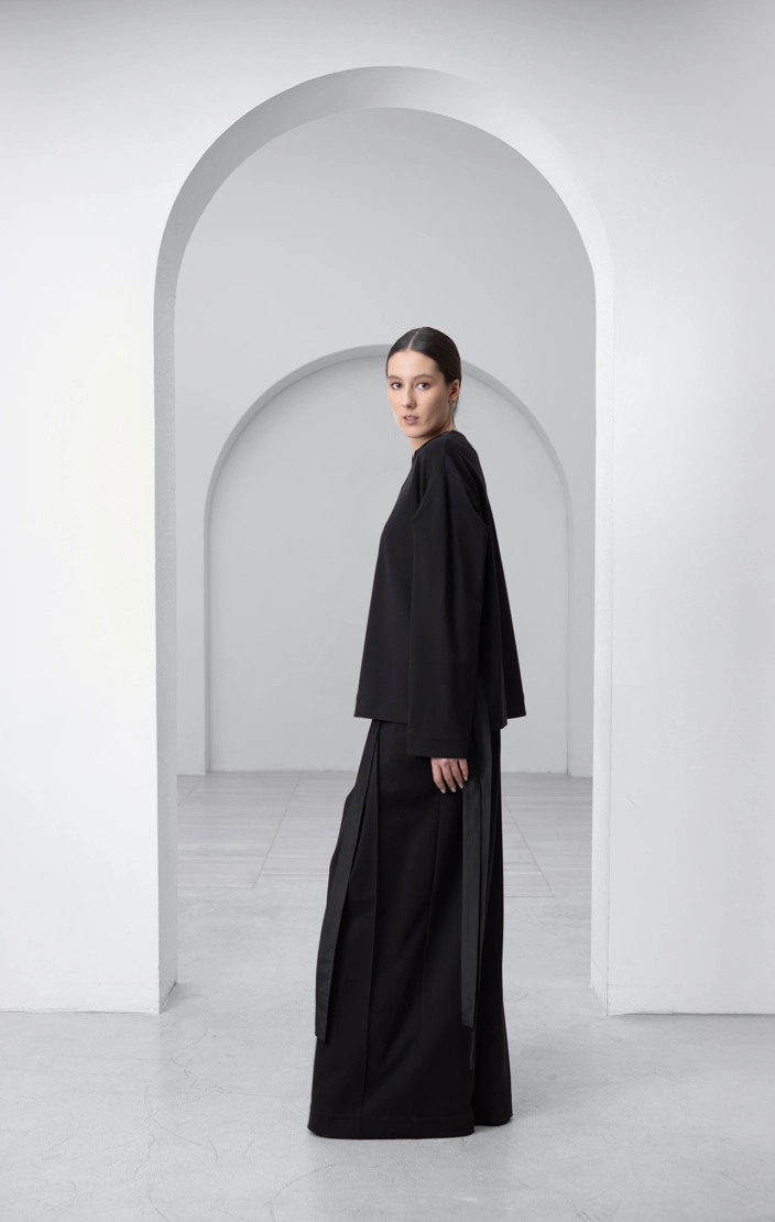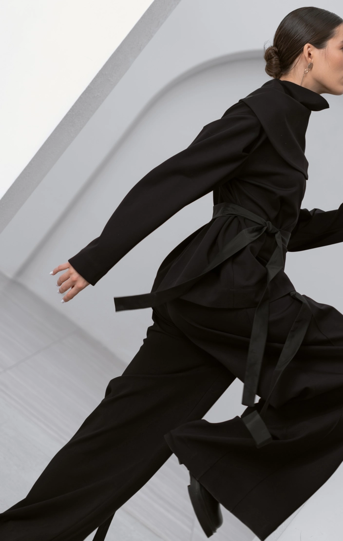 Каждый шаг в этих брюках чувствуется уверенно – приятная к телу ткань комфортно заземляет благодаря своей тяжести