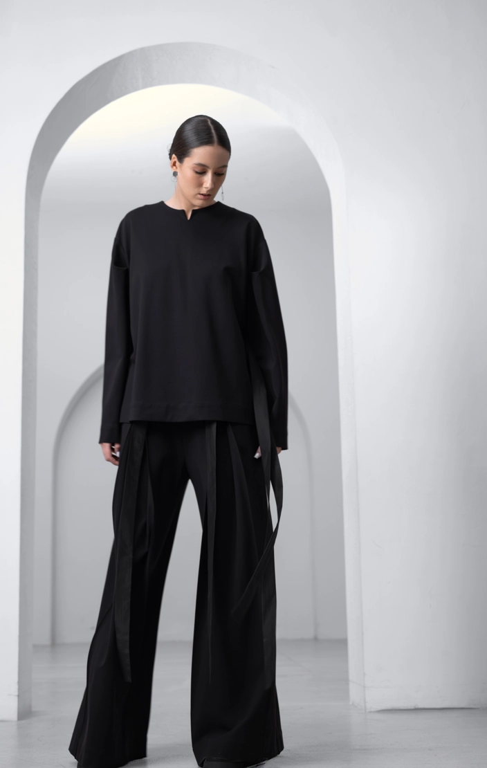 Брюки с лентами черные